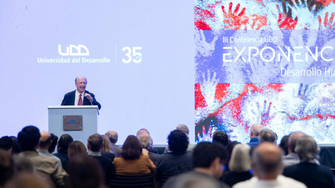 Cristián Larroulet analiza las reflexiones de los Premios Nobel Philippe Aghion y Abhijit Banerjee en conferencia Exponencial UDD 2025