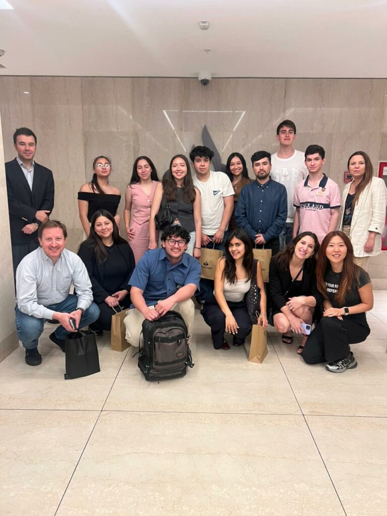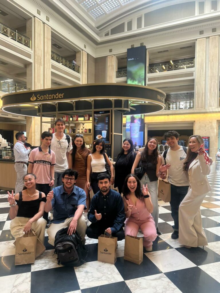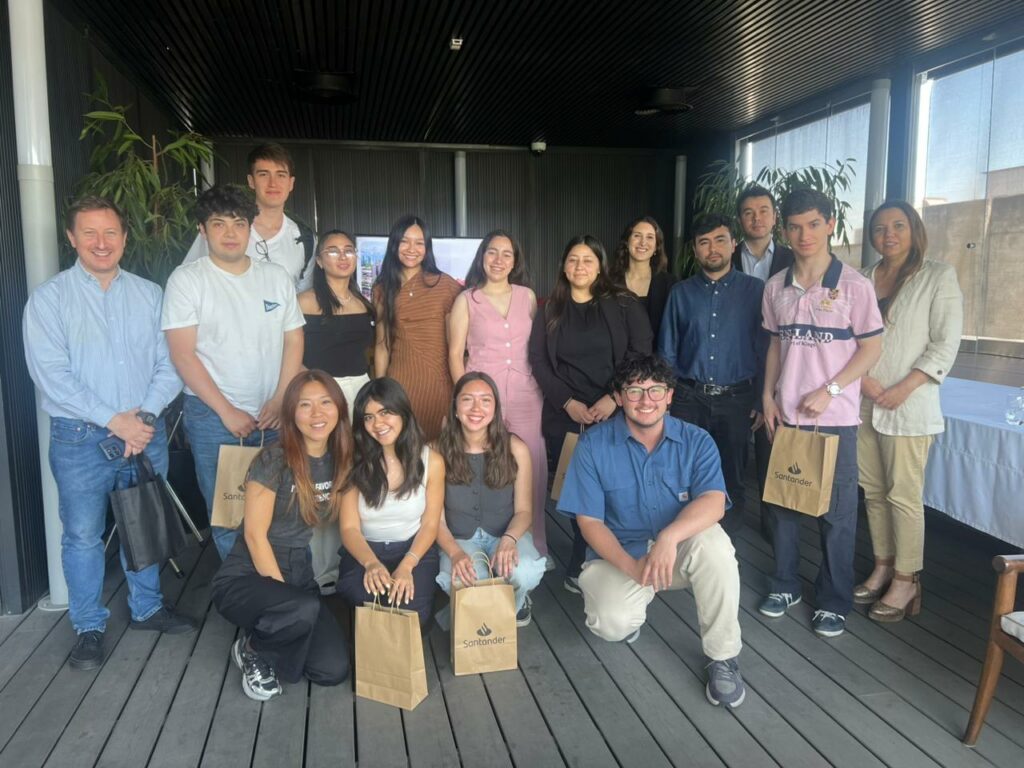 De manera complementaria, en una segunda instancia, los alumnos visitaron las oficinas de Banco Santander. Allí fueron recibidos por Benjamín Barros, Director de Relaciones Institucionales y Emprendimiento; Sang Hee Yun, Employer Branding Santander Chile; María Catalina del Real, Project Manager de Talento y Cultura; María José Silva, Agente Work Café; y Joaquín Beristain, Jefe de Investment Advisory en Santander Private Banking.