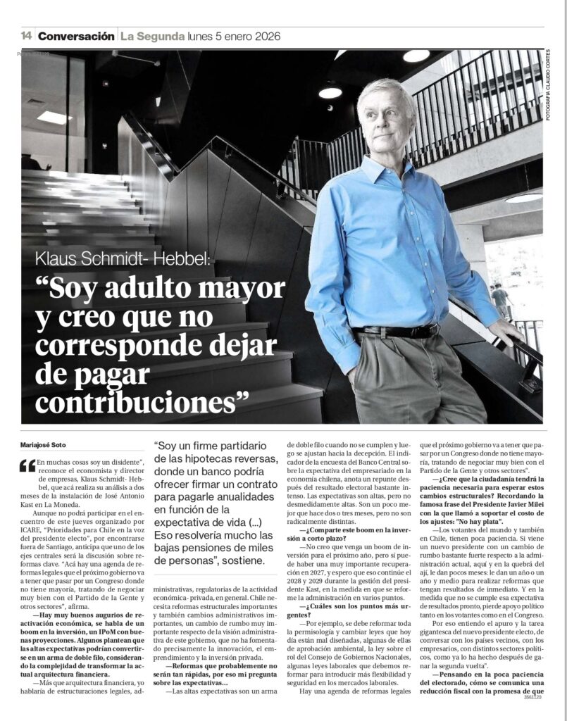 “En muchas cosas soy un disidente”, reconoce el profesor e investigador del Centro de Investigación de Empresa y Sociedad (CIES) de la Universidad del Desarrollo y director de empresas, Klaus Schmidt- Hebbel, que acá realiza su análisis a dos meses de la instalación de José Antonio Kast en La Moneda.