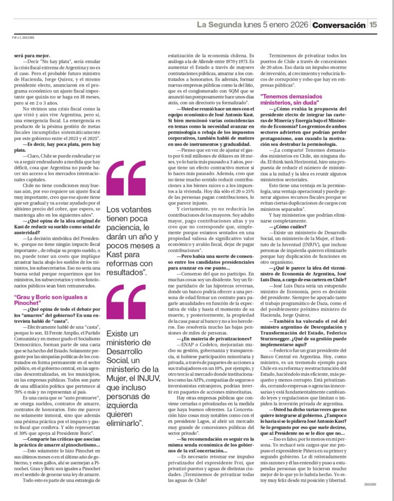 Es una casta que se “auto promueve”, se otorga sueldos, contratos de amarre, contratos de honorarios. Esto me parece no solamente inmoral, sino que además una pésima práctica por el impacto y gasto fiscal que conlleva. Y sólo representan el 30% que apoya al Presidente Boric».