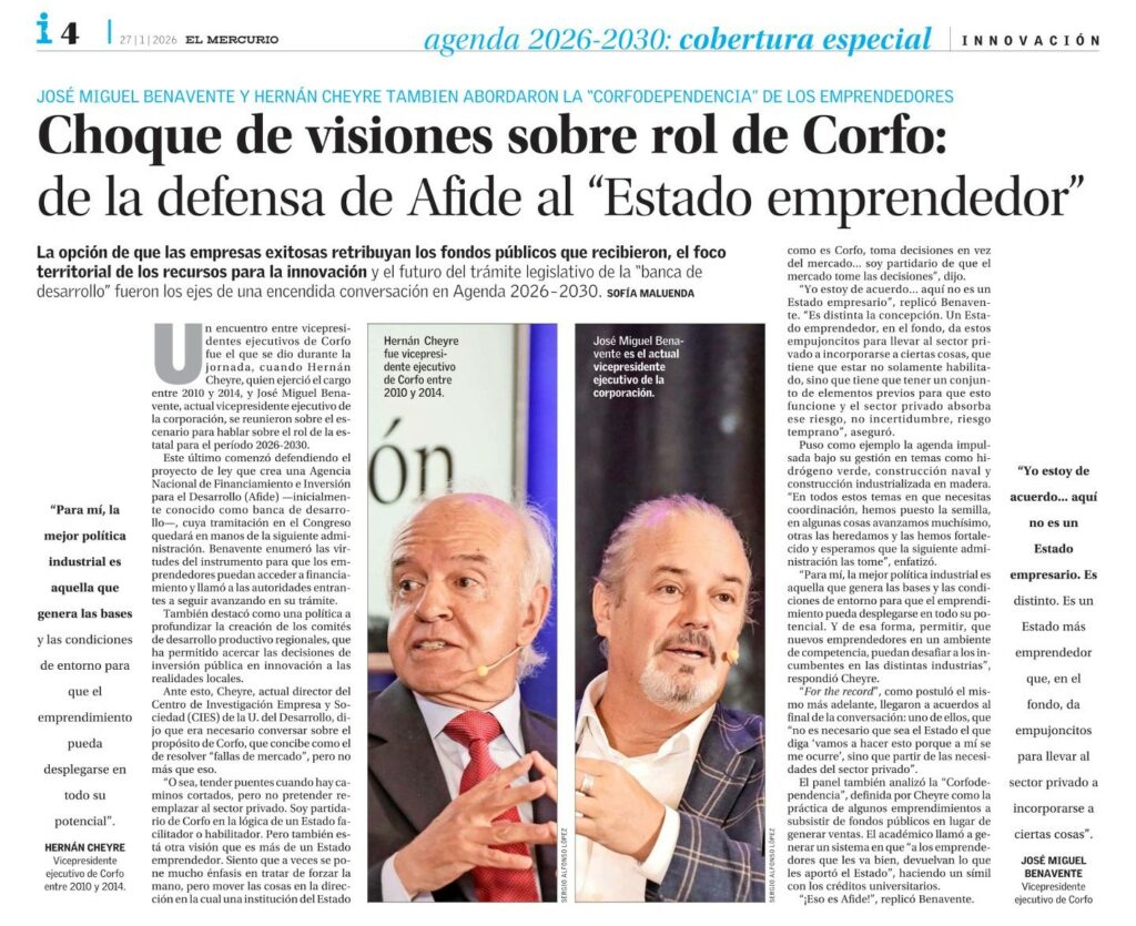 La respuesta de Benavente fue matizada, precisando que el problema no es el apoyo inicial, sino el mal diseño de la trayectoria. “Sería distinto si fuera la misma empresa recibiendo siempre el mismo tipo de apoyo. Eso sí genera dependencia y no es un buen diseño de política pública”, sostuvo.