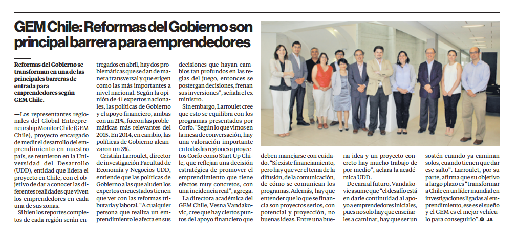 GEM Chile: Reformas del Gobierno son principal barrera para emprendedores