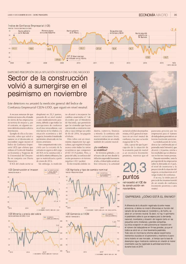 Sector de la construcción volvió a sumergirse en el pesimismo en noviembre