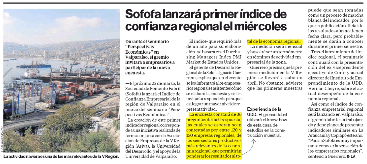Sofofa lanzará primer índice de confianza regional el miércoles